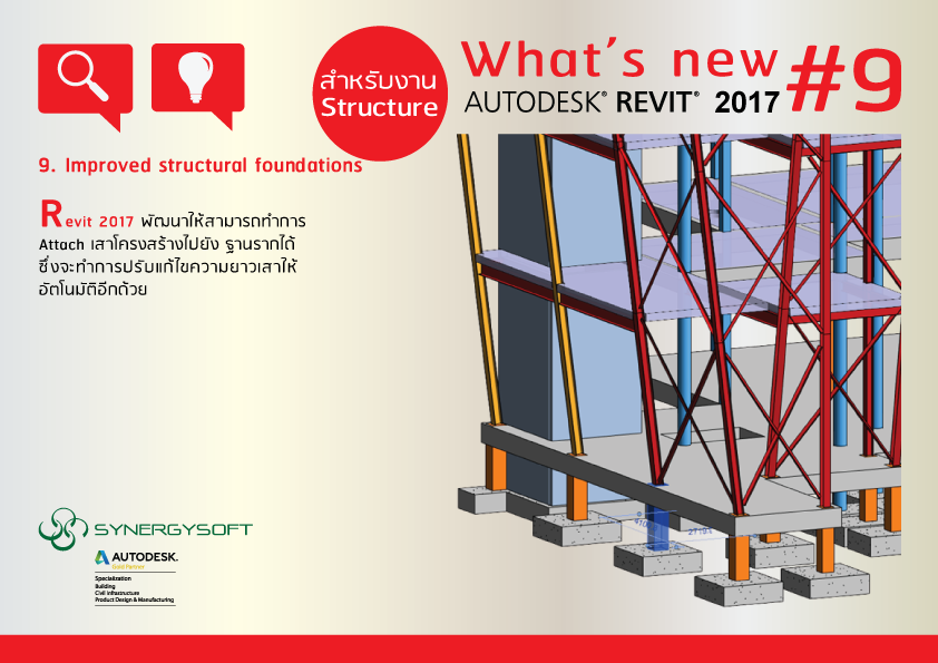 Revit 2017 ได้พัฒนาให้สามารถทำการ Attach เสาโครงสร้างไปยัง ฐานรากได้ ซึ่งจะทำการปรับแก้ไขความยาวเสาให้อัตโนมัติอีกด้วย