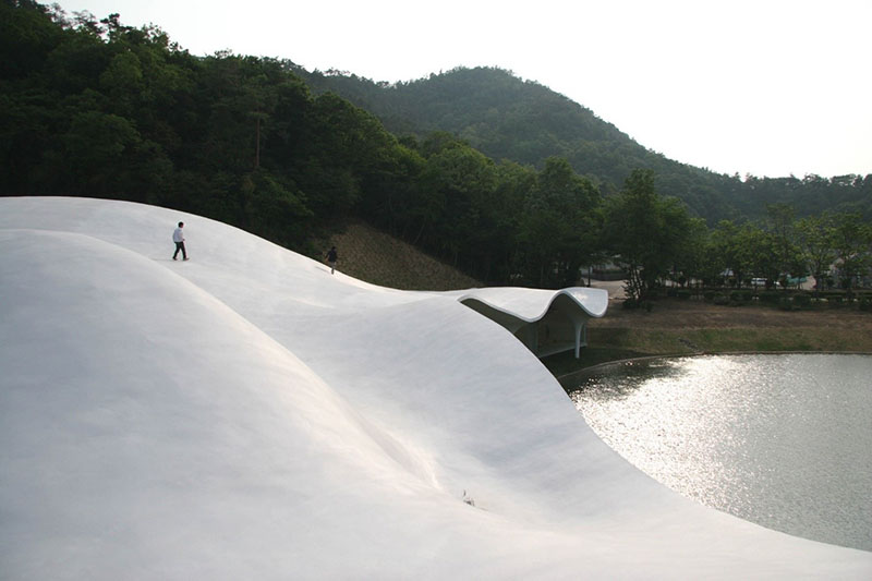 3.Meiso no Mori Municipal Funeral Hall สร้างขึ้นเมื่อปี 2006 โดย Toyo Ito