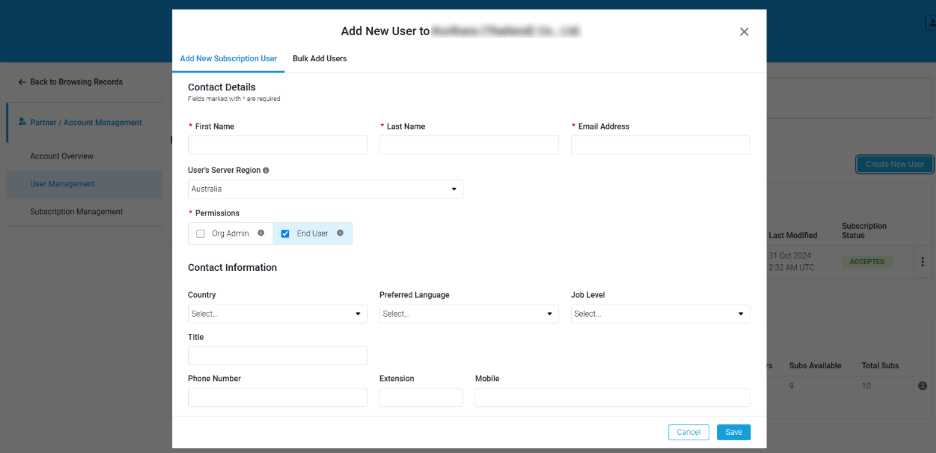 4.หลักจากนั้นจะปรากฏหน้าต่างนี้ขึ้นมา หาก User ที่สร้างขึ้นใหม่ยังเป็น Subscription แบบ Basic อยู่ ให้ดำเนินการเลือกไปที่ Subscription แบบ Core หรือ Complete ในกรณีนี้จะแยกแล้วแต่ที่มีการซื้อ License ไว้ว่าเป็นแบบไหน เมื่อทำการเลือก Subscription แล้วให้คลิกที่ Save Change