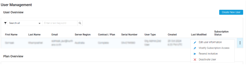 3.จากนั้นเมื่อเราสร้าง User มาสำเร็จแล้วและต้องการเปลี่ยนแปลงเรื่อง Subscription ให้คลิกที่จุดสามจุด (Setting) และเลือกไปที่หัวข้อ Modify Subscription Access