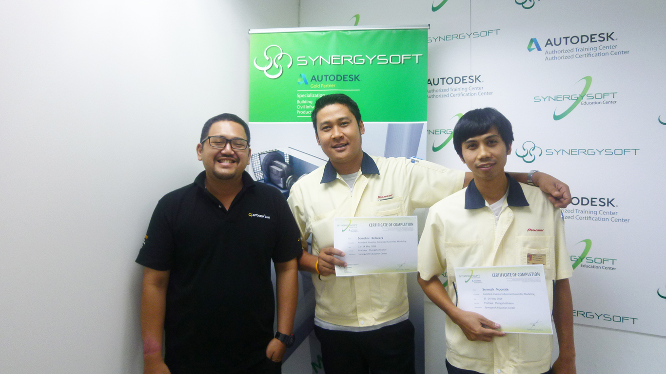 ขอแสดงความยินดีกับผู้ผ่านการอบรมทั้งสองท่านในคอร์สอบรม Autodesk Inventor Advanced Assembly Modeling (Inv-05) เมื่อวันที่ 23- 24 พฤษภาคม 2559 ณ ซินเนอร์จี้ซอฟต์ เอ็ดดูเคชัน เซนเตอร์